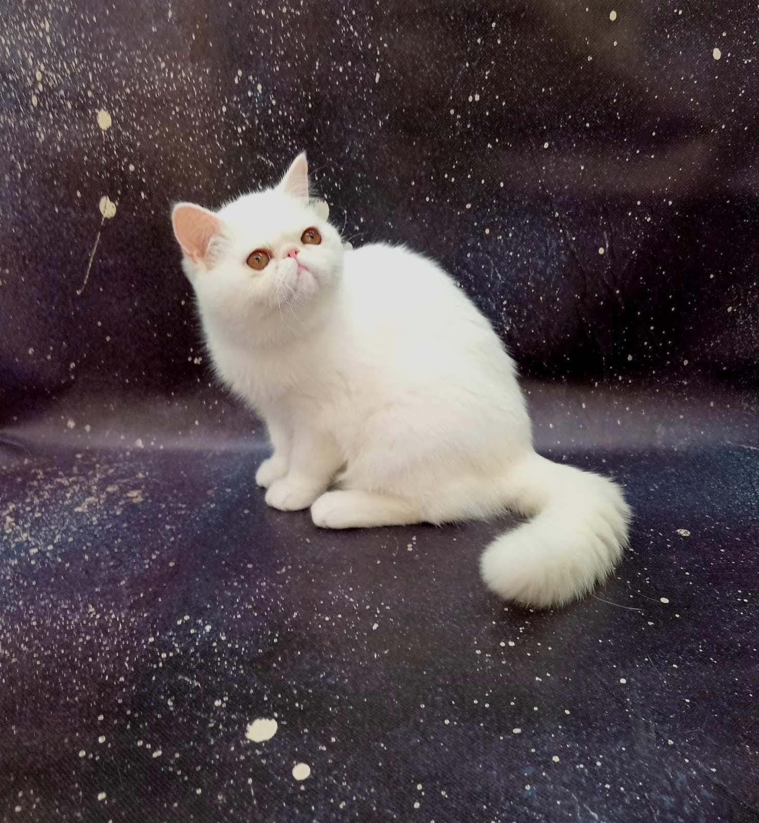 Exotic kittens epitomize charm and uniqueness in the feline world. With their plush, dense coats, distinctive round faces, and strikingly expressive eyes, Exotic kittens exude an enchanting and captivating presence. Renowned for their playful and affectionate nature, they are loving companions who enjoy engaging with their human families and playing with toys. Their calm demeanor and easy going temperament make them well-suited for indoor living, delighting in moments of relaxation and playful interaction. Exotic kittens symbolize a perfect blend of elegance and playful companionship, making them a delightful addition to any loving home.