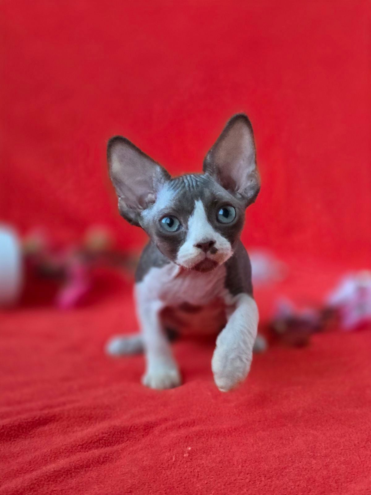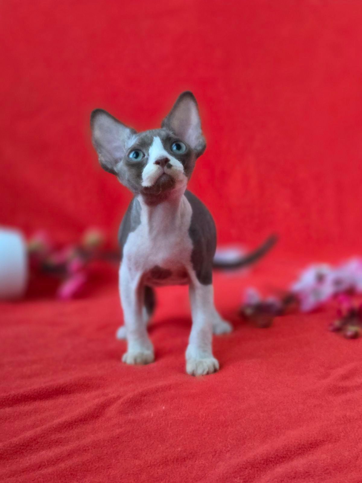 Devon Rex kittens stand out with their wavy coats, large ears, and elfin facial features. Their unique appearance and lightweight build give them a modern, artistic look that is highly sought after.