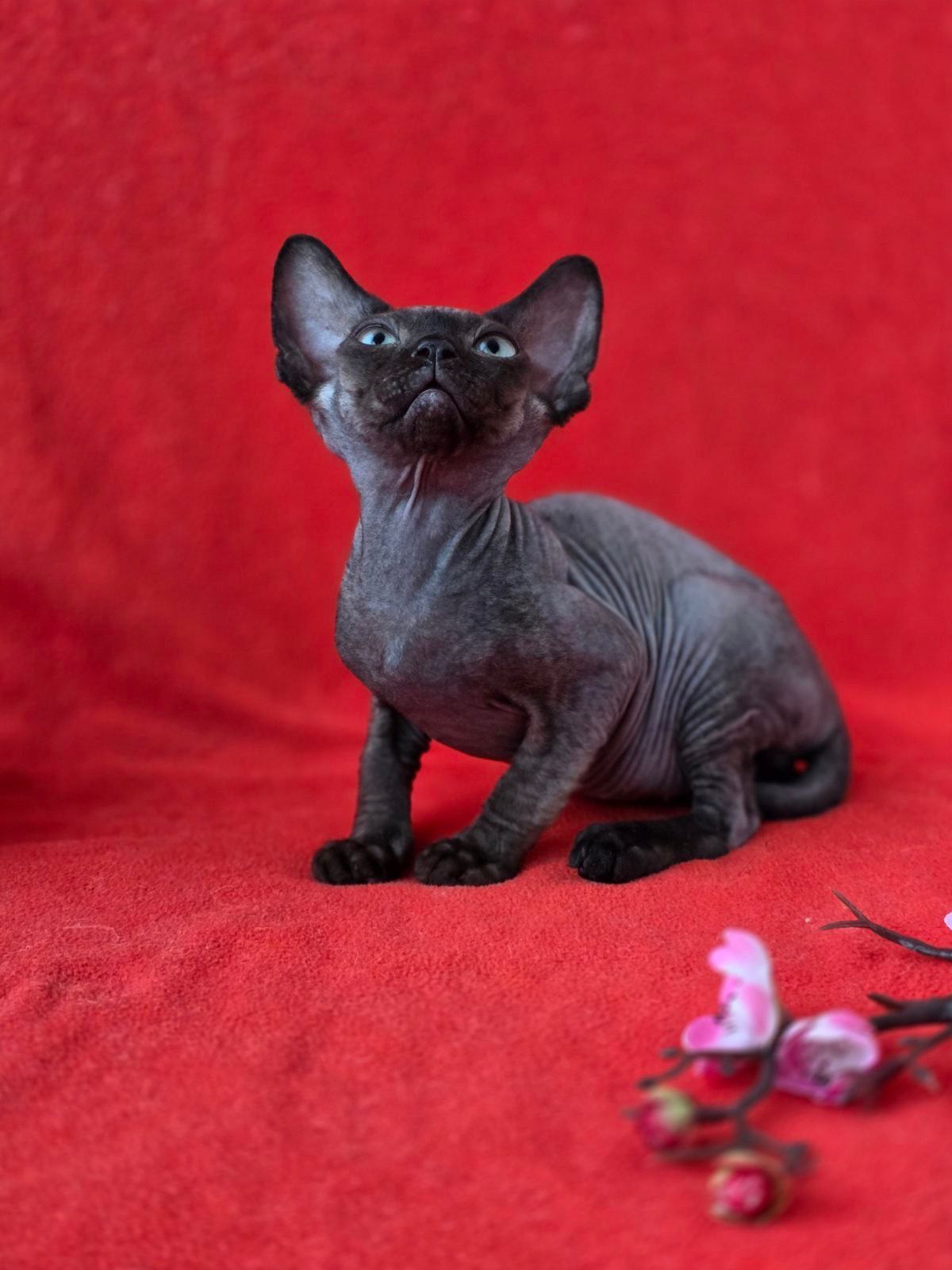 Devon Rex kittens stand out with their wavy coats, large ears, and elfin facial features. Their unique appearance and lightweight build give them a modern, artistic look that is highly sought after.